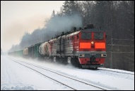 Тепловоз 2ТЭ25КМ-0465 с грузовым поездом на перегоне Ватан - Миннибаево, Татарстан, 16.I.2022, Хамзин Руслан, опубл. 24.I.2022