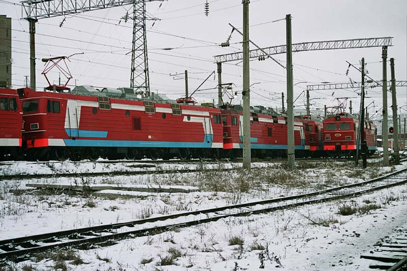 | Электровозы ЭП1 { Series EP1 electric locomotives }, депо Саратов { Saratov shed }, Саратовская обл. Автор: Михайлов Виктор | Фото сделано 5.I.2004, опубликовано 24.I.2004.