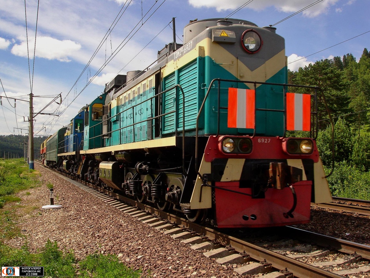 | Тепловоз ТЭМ2К-6927 с рабочим поездом на перегоне Зыково - Сорокино, Красноярский край Автор: Bulat | Фото сделано 18.VII.2008, опубликовано 9.XI.2008.