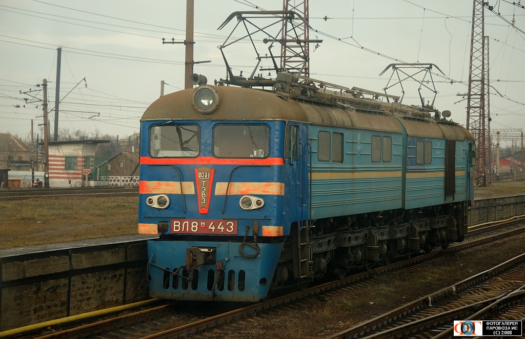 | Электровоз ВЛ8М-443, ст. Дебальцево, Донецкая обл. Автор: Орлов Д. | Фото сделано 26.XI.2008, опубликовано 5.XII.2008.