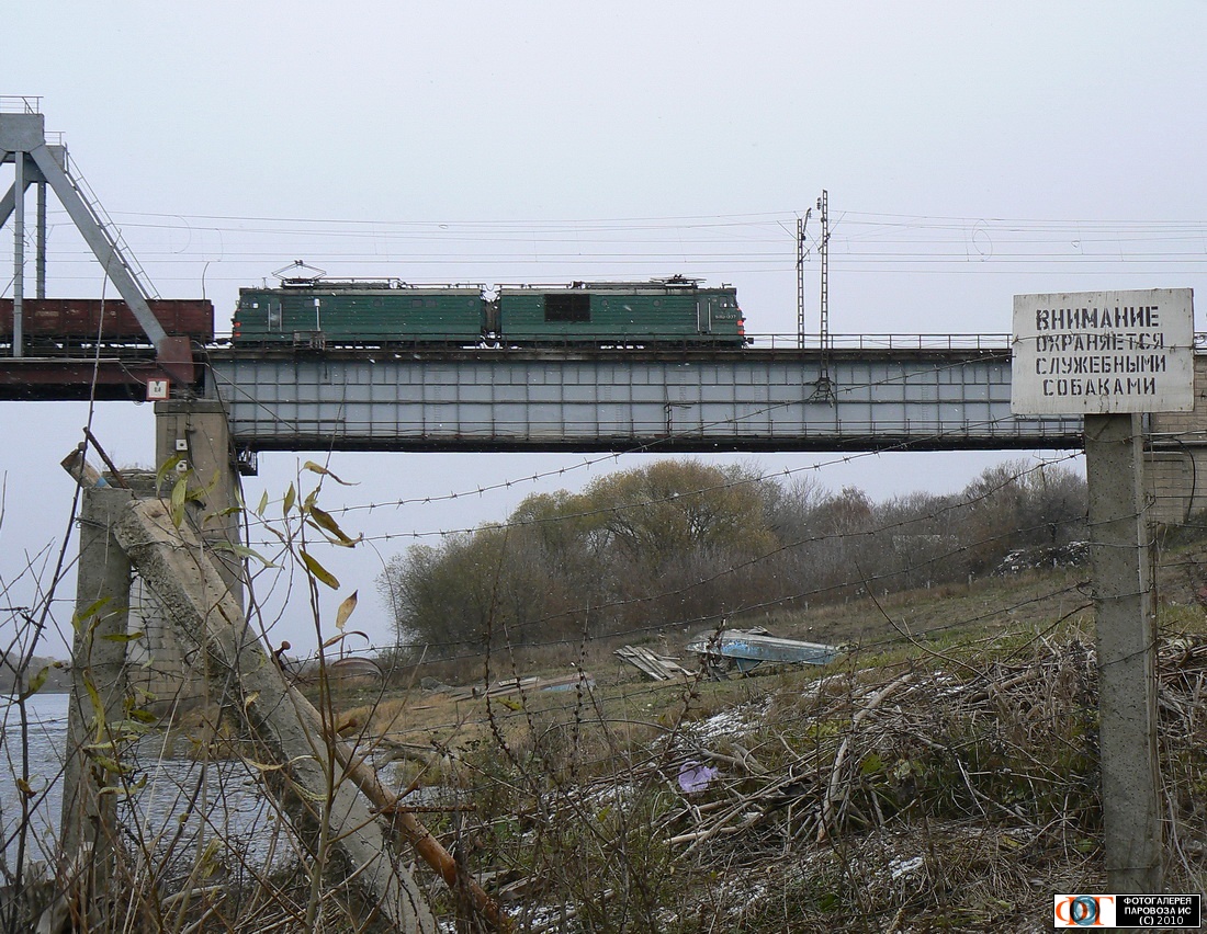 | "Под запретом". Электровоз ВЛ10-1337 на мосту через р. Ока, перегон Голутвин - Щурово, Московская обл. Автор: Наш путь | Фото сделано 1.XI.2009, опубликовано 24.III.2010.