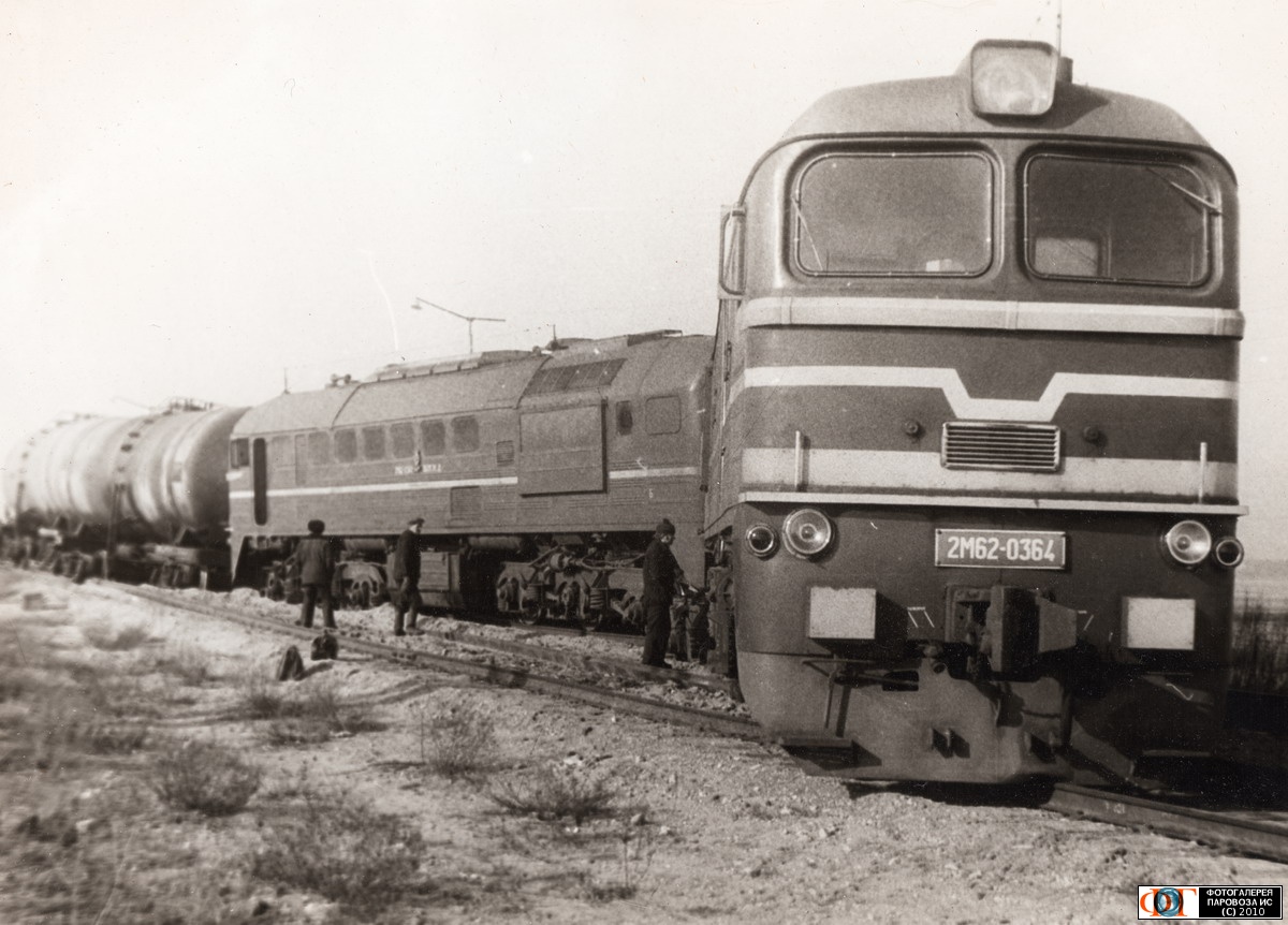 | Сход тепловоза 2М62-0364, подъездные пути Олайнской нефтебазы от ст. Олайне, Латвия Автор: Пётрldz (колл.) | Фото сделано 1.IV.1981, опубликовано 17.V.2010.