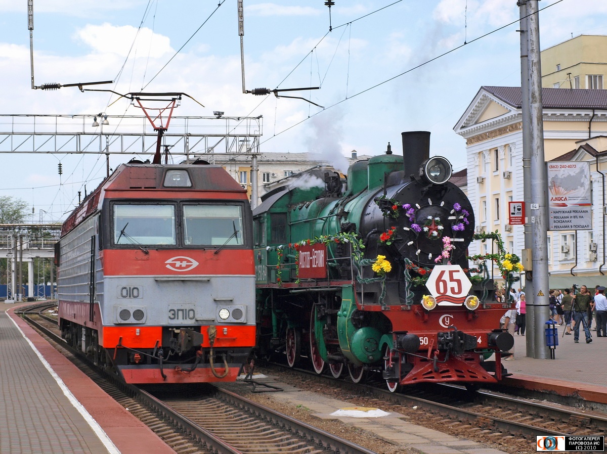 | "Прошлое и настоящее..." Паровоз Су250-64 и электровоз ЭП10-010 на ст. Ростов-Главный, Ростовская обл. Автор: Димон | Фото сделано 9.V.2010, опубликовано 23.V.2010.