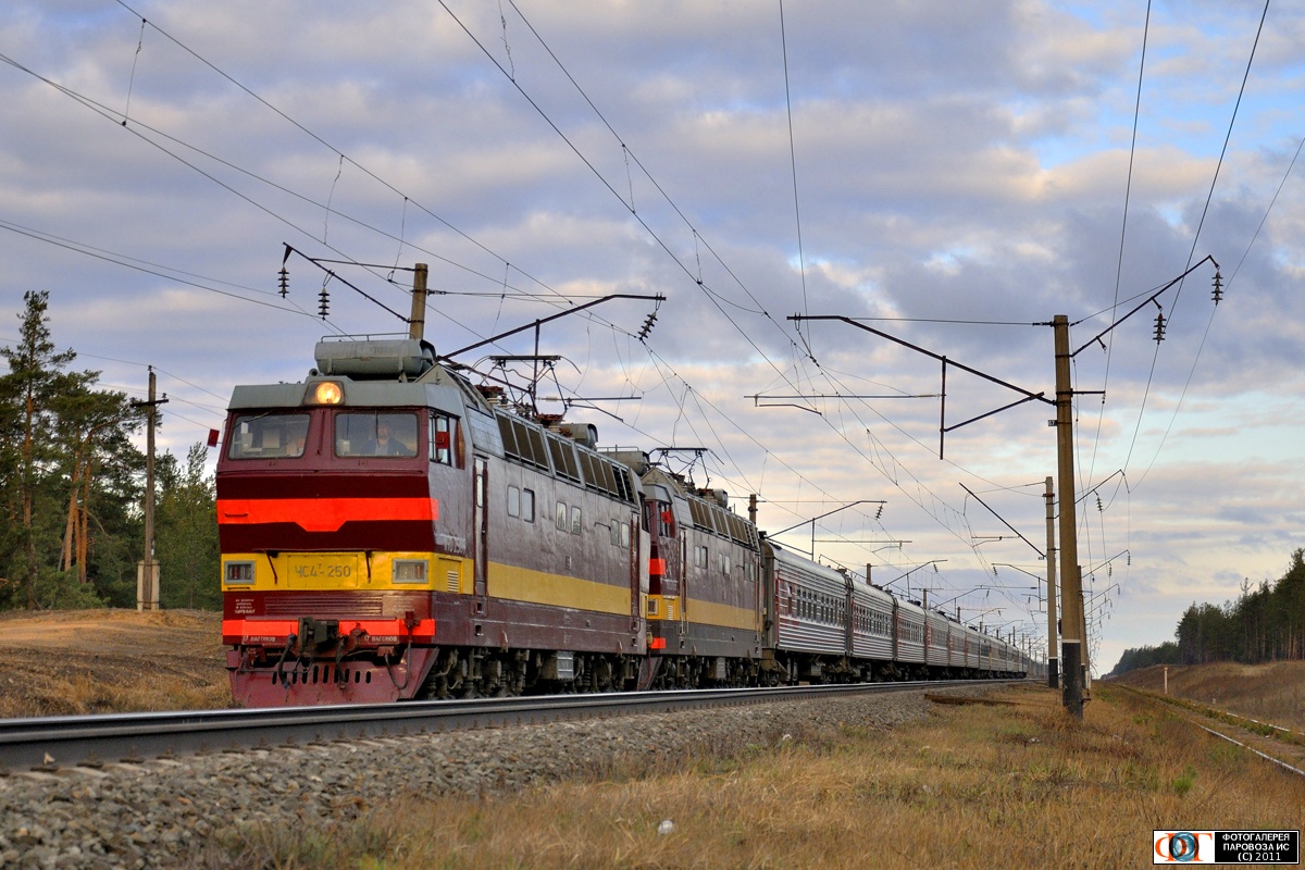 | Электровоз ЧС4Т-250 и ЧС4Т с поездом №118 Москва - Нижний Новгород, окрестности о.п. Пушкино, перегон Жолнино - Дзержинск, ГЖД, Нижегородская обл. Автор: Alexander495. | Фото сделано 24.IV.2010, опубликовано 26.II.2011.