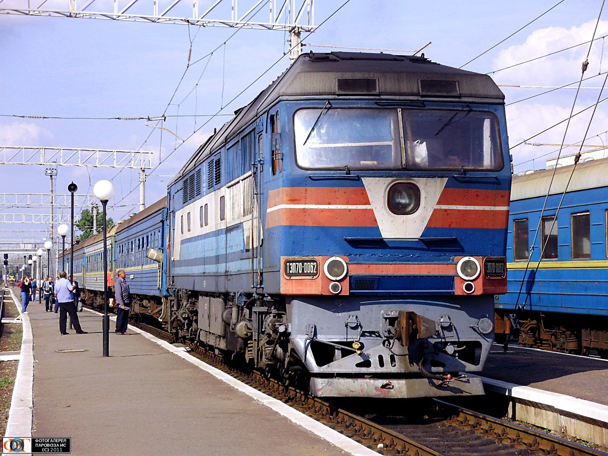 | Тепловоз ТЭП70-0062 на ст. Полтава-Южная с пригородным поездом Полтава - Кременчуг, Полтавская обл. Автор: Алексей Краснов | Фото сделано 11.IX.2009, опубликовано 30.III.2011.