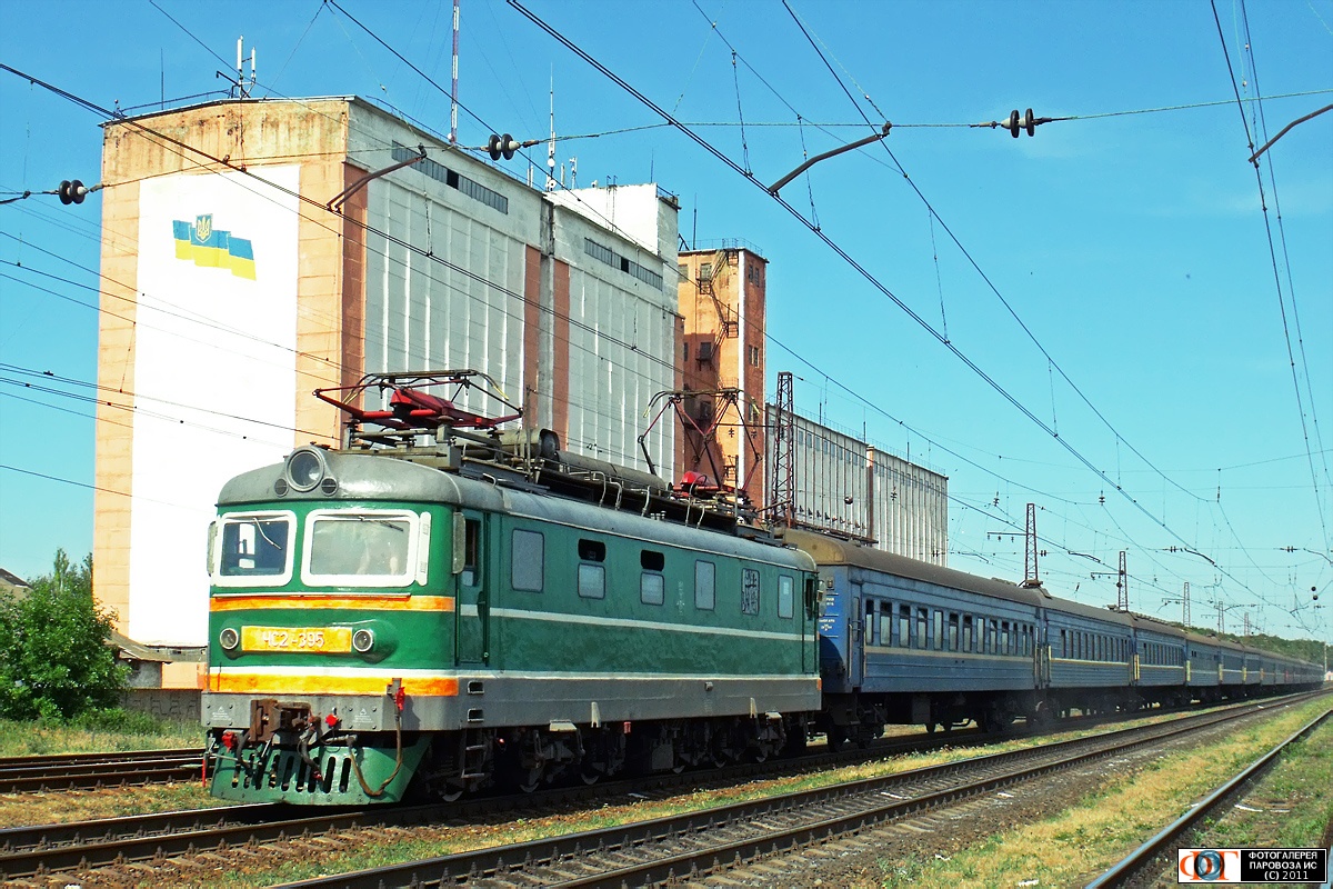 | Электровоз ЧС2-395 с поездом №69/70 Мариуполь - Львов, ст. Межевая, Днепропетровская обл. Автор: Andrei | Фото сделано 2.VI.2011, опубликовано 25.VII.2011.