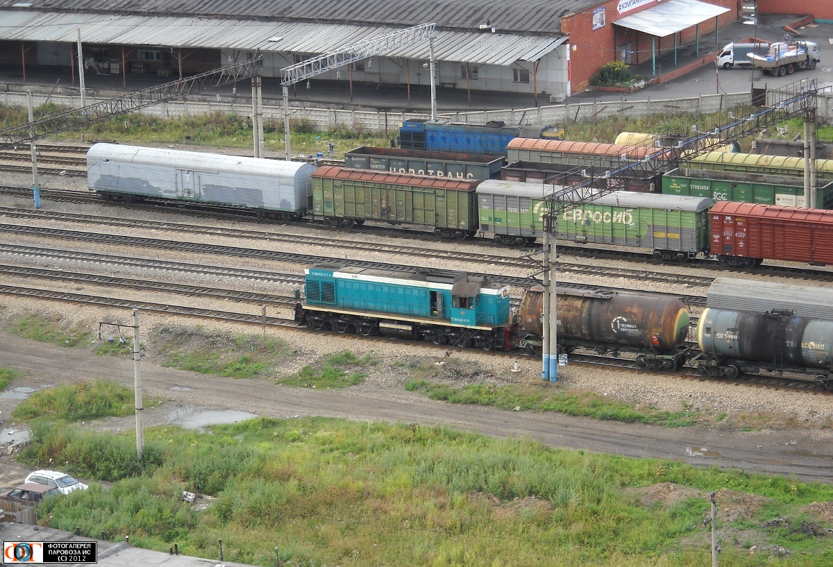 | Тепловозы ТЭМ18Д-074 и ТЭМ2УМ-676, западная горловина станции Красноярск-Северный, Krasnoyarsk territory Author: Колесников Я.В.† | Picture taken: 21.VIII.2012, published 24.X.2012.