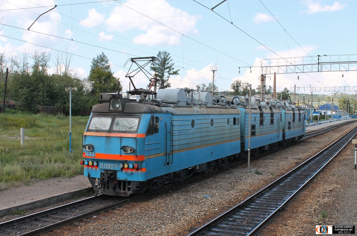 | Электровоз ВЛ80ТК-1470 на ст. Горхон, Бурятия Автор: Геннадий | Фото сделано 29.VII.2012, опубликовано 29.X.2012.