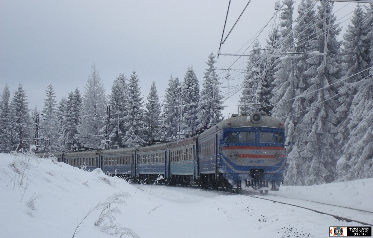 | Электропоезд ЭР2-305 на перегоне Сянки - Щербин, Львовская обл. Автор: Любомир | Фото сделано 4.I.2011, опубликовано 5.XI.2012.