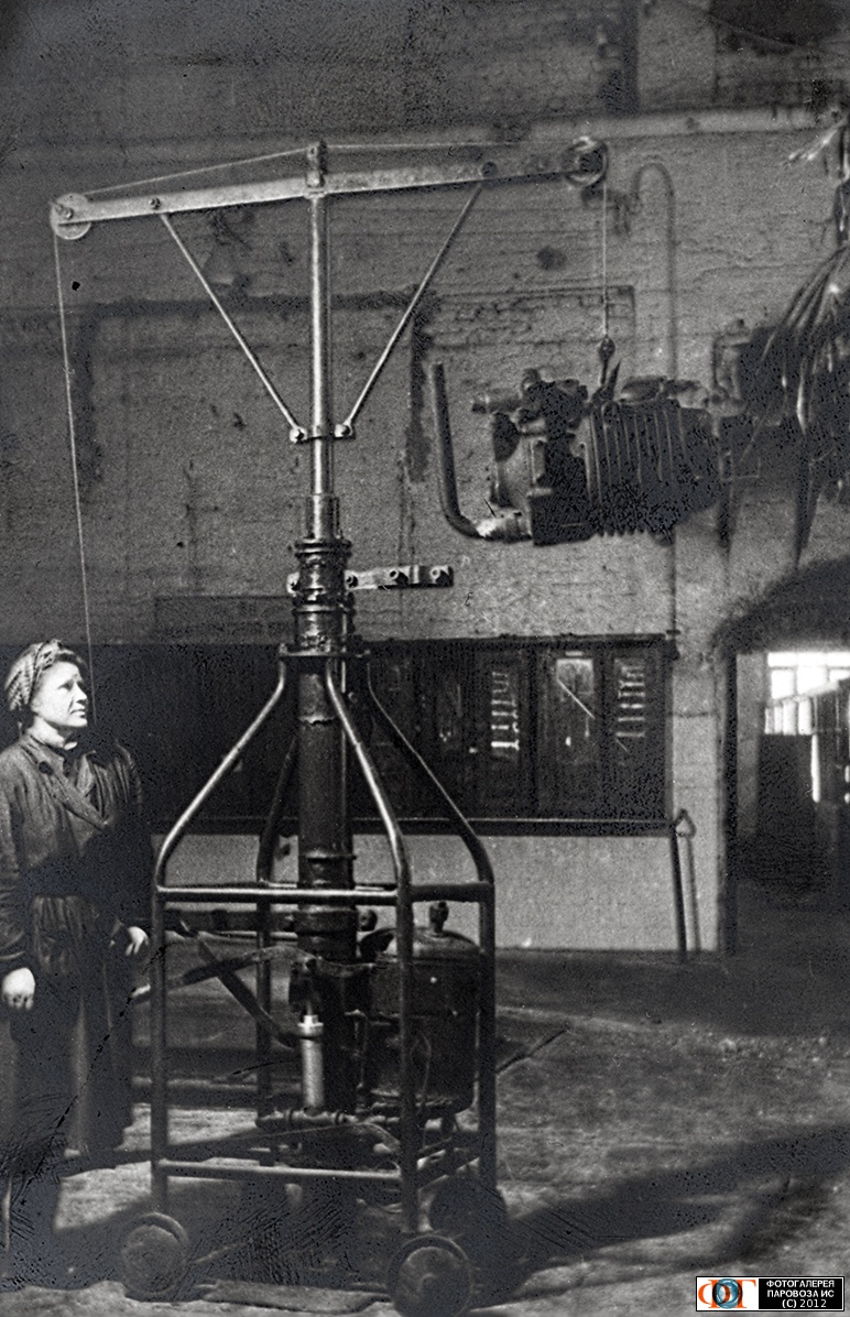 | Гидравлический телескопический подъёмник в депо Москва-Бутырская Ярославской ж.д., Москва Автор: Огнев О. В. (колл.) | Фото сделано 1951 г, опубликовано 17.XI.2012.