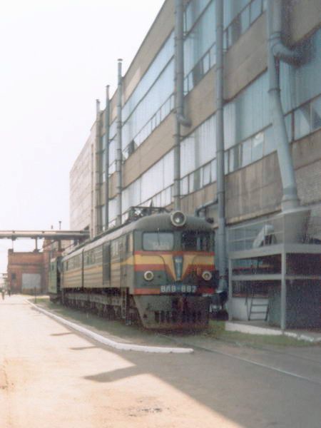 | Электровоз ВЛ8-882 { VL8-882 electric locomotive }, Львовский ЛРЗ { Lvov locomotive repair plant }, Львовская обл. Автор: Владимир `Рашпиль` Климус | Фото сделано 2003 г, опубликовано 3.I.2004.