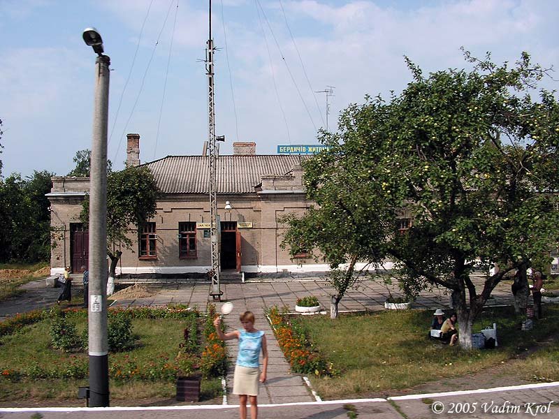 | ДСП встречает поезд{ DSPvstrechaet poezd }, ст. Бердичев-Житомирский { st. Berdichev-Zhitomirskiy }, Житомирская обл. Автор: Вадим Кроль | Фото сделано 2.VIII.2005, опубликовано 18.VII.2006.
