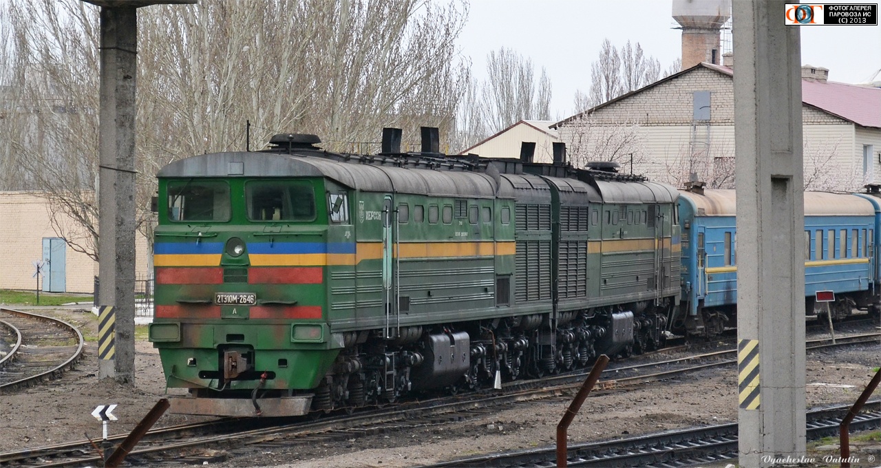 | Тепловоз 2ТЭ10М-2646 в депо Херсон (ТЧ-10), Херсонская обл. Автор: S.V. | Фото сделано 7.IV.2013, опубликовано 25.IV.2013.
