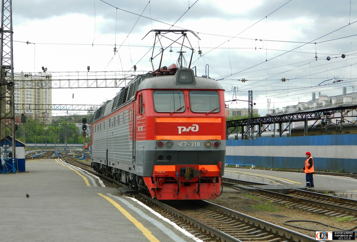 | Электровоз ЧС7-318, станция Екатеринбург-Пассажирский, Свердловская обл. Автор: Кирилл Широков | Фото сделано 25.V.2012, опубликовано 27.X.2013.