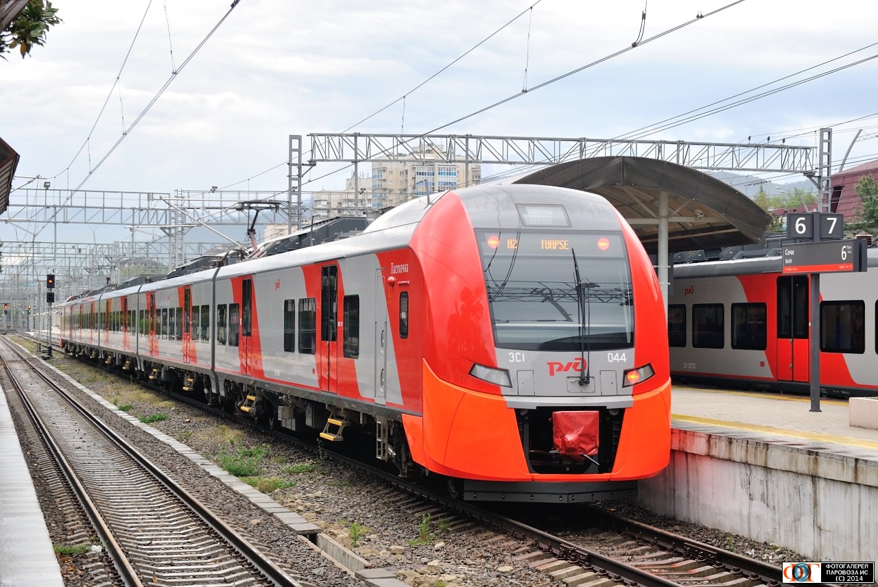 | Электропоезд ЭС1-044 на станции Сочи, Краснодарский край Автор: Bessochi | Фото сделано 20.IV.2014, опубликовано 21.IV.2014.