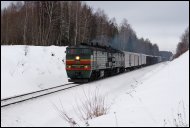| Тепловоз 2ТЭ10М-0387 с грузовым поездом на перегоне Фурманов - Домовицы Северной ж.д., Ивановская обл. Автор: Прок@зник | Фото сделано 12.IV.2014, опубликовано 11.VI.2014.