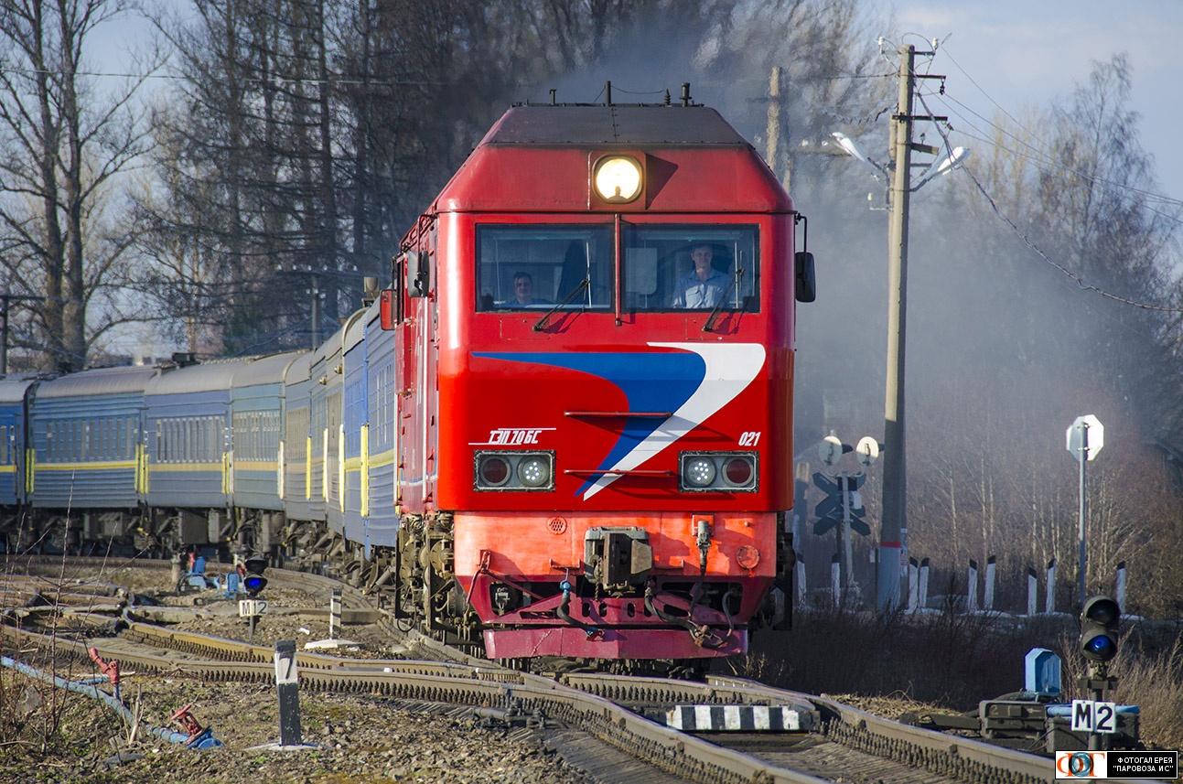 | Тепловоз ТЭП70БС-021 с пассажирским поездом, станция Оредеж, Ленинградская обл. Автор: тишкин роман петрович | Фото сделано 10.IV.2016, опубликовано 18.VII.2016.
