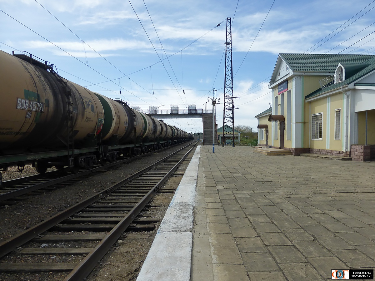 | Платформа и вокзал станции Тинская, Транссиб, Красноярский край Автор: Никич | Фото сделано 10.V.2015, опубликовано 3.V.2017.