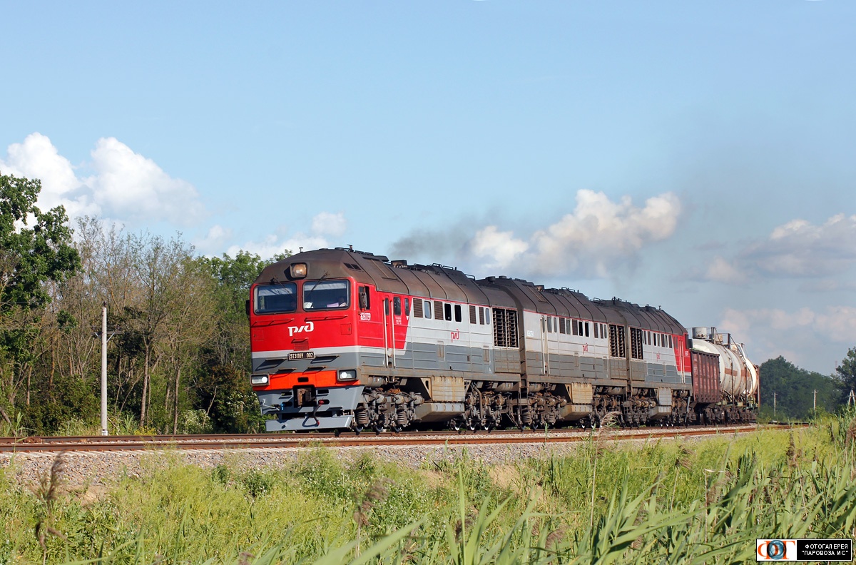 | Тепловоз 3ТЭ116У-002 с поездом на перегоне Юровский - Красная Стрела, Krasnodar territory Author: Тимур | Picture taken: 12.VI.2017, published 19.XI.2017.