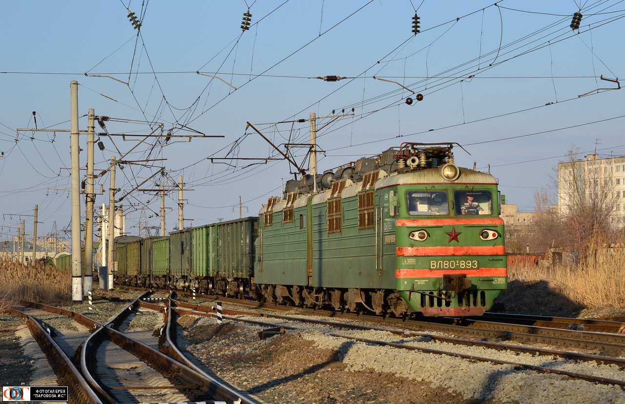 | Электровоз ВЛ80Т-893 с грузовым поездом, ст. Спартановка, Волгоград, Волгоградская обл. Автор: Гений 4 | Фото сделано 12.IV.2015, опубликовано 4.I.2020.