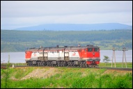 | Тепловоз 2ТЭ25КМ-0016 в голове грузового поезда, перегон Ванино - Советская Гавань-Сортировочная, ДВОСТ, Хабаровский край Автор: Alexander495. | Фото сделано 24.IX.2020, опубликовано 26.XI.2020.