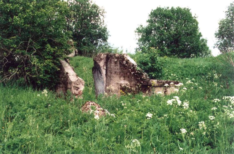 Хревицы. Здесь лежит огромный бык, поваленный, взрывом (фото слева).