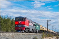 Тепловоз 2ТЭ116-466А/293Б с грузовым поездом на перегоне рзд. Почекуйка - рзд. Силинский, Ханты-Мансийский АО, 30.IV.2016, albo, опубл. 17.VI.2016