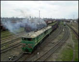 |  |  |  | Тепловоз 2ТЭ116-1256 в составе дизель-поезда ДПЛ2-006 прибывает на станцию Луганск, Луганская обл., 8.V.2009, CraZy Man, опубл. 22.IV.2013 [Ещё ДПЛ2...] [Ещё ДПЛ2-006...] | Тепловоз 2ТЭ116-1281 в составе дизель-поезда ДТЛ2 сообщением №6442 разъезд Карьер 122 км - Коммунарск прибыл на о.п. 78 км, окрестности станции Луганск, Луганская обл., 17.V.2009, CraZy Man, опубл. 20.IV.2011 [Ещё 2ТЭ116...] [Ещё 2ТЭ116-1281...] | Тепловоз 2ТЭ116-1281 в составе дизель-поезда ДТЛ2 сообщением Коммунарск - Ольховая на перегоне Луганск - Луганск-Северный, Луганская обл., 23.V.2009, CraZy Man, опубл. 22.IV.2011 [Ещё 2ТЭ116...] [Ещё 2ТЭ116-1281...] | Дизель-поезд ДПЛ2-002 №6492 сообщением Луганск - Сватово на о.п. Новососновский, перегон Кременное - Кабанье, Луганская обл., 10.VII.2009, CraZy Man, опубл. 25.XII.2012 [Ещё ДПЛ2...] [Ещё ДПЛ2-002...] | | | : 2 | |  |  |  |  | | Станция Рубежное, Луганская обл., 11.VII.2009, CraZy Man, опубл. 23.III.2010 | Тепловоз 2ТЭ116-1287/1570 на станции Рубежное, Луганская обл., 11.VII.2009, CraZy Man, опубл. 8.I.2011 [Ещё 2ТЭ116...] [Ещё 2ТЭ116-1287...] | Дизель-поезд Д1-609 сообщением Попасная - Сватово на перегоне Кременное - Кабанье, Луганская обл., 12.VII.2009, CraZy Man, опубл. 28.III.2010 [Ещё Д1...] [Ещё Д1-609...] | Тепловоз 2ТЭ116-1188 с дизель-поездом ДПЛ2-001 имени А. Г. Еременко на станции Луганск, Луганская обл., 14.IX.2009, CraZy Man, опубл. 26.XI.2009 [Ещё ДПЛ2...] [Ещё ДПЛ2-001...] | : 6 | | : 84 : 7 | : 6 |  |  |  |  | Тепловоз 2ТЭ116-736 в составе дизель-поезда ДТЛ2 сообщением №6492 Луганск - Сватово на мосту через реку Ольховая, станция Луганск, Луганская обл., 25.IX.2009, CraZy Man, опубл. 5.I.2011 [Ещё 2ТЭ116...] [Ещё 2ТЭ116-736...] | Тепловоз 2ТЭ116-1281 в составе дизель-поезда ДТЛ2 сообщением №6442 Разъезд Карьер 122 км - Коммунраск на о.п. 78 км, перегон Луганск-Северный - Луганск, Луганская обл., 10.X.2009, CraZy Man, опубл. 22.IV.2011 [Ещё 2ТЭ116...] [Ещё 2ТЭ116-1281...] | Электровоз ЧС7-155 на станции Луганск, Луганская обл., 18.I.2010, CraZy Man, опубл. 13.III.2010 [Ещё ЧС7...] [Ещё ЧС7-155...] | Тепловоз 2ТЭ116-1059 в составе дизель-поезда ДТЛ2 на станции Дебальцево, Донецкая обл., 29.I.2010, CraZy Man, опубл. 12.I.2015 [Ещё 2ТЭ116...] [Ещё 2ТЭ116-1059...] | : 95 | : 151 : 5 | | |  |  |  |  | Тепловоз 2ТЭ116-1215/1043 на перегоне Кондрашевская-Новая - Кондрашевская, Луганская обл., 21.II.2010, CraZy Man, опубл. 4.X.2010 [Ещё 2ТЭ116...] [Ещё 2ТЭ116-1215...] | Заброшенный путь на треугольник с РПЧ Родаково, Луганская обл., 21.II.2010, CraZy Man, опубл. 23.III.2011 | Локомотивное депо Кондрашевская-Новая (ТЧ-16 ДОН), Луганская обл., 21.II.2010, CraZy Man, опубл. 31.I.2015 [Ещё ТЧ...] [Ещё ТЧ-16...] | Тепловоз 2ТЭ116-826 в локомотивном депо Красноармейск, Донецкая обл., 13.III.2010, CraZy Man, опубл. 16.V.2010 [Ещё 2ТЭ116...] [Ещё 2ТЭ116-826...] | : 3 | : 3 | | |  |  |  |  | "Спрятался". Тепловоз ТГМ23Д44-244 на территории ЗАО "Луганский литейно - механический завод", Луганская обл., 19.III.2010, CraZy Man, опубл. 10.II.2011 [Ещё ТГМ23Д44...] [Ещё ТГМ23Д44-244...] | Дизель-поезд Д1-741 сообщением Купянск - Попасная, перегон Кабанье - Кременное, Луганская обл., 2.IV.2010, CraZy Man, опубл. 14.V.2010 [Ещё Д1...] [Ещё Д1-741...] | Тепловоз 2ТЭ116-1189 с поездом Москва - Донецк на перегоне Сватово - Кабанье, Луганская обл., 3.IV.2010, CraZy Man, опубл. 12.V.2010 [Ещё 2ТЭ116...] [Ещё 2ТЭ116-1189...] | Дизель поезд Д1-778 сообщением Попасная - Сватово на участке о.п. Краснорецкий - о.п. Новососновский, перегон Кременное - Кабанье, Луганская обл., 3.IV.2010, CraZy Man, опубл. 16.V.2010 [Ещё Д1...] [Ещё Д1-778...] | | : 2 | : 3 | |  |  |  |  | | Павильон остановочного пункта Краснорецкий, перегон Кременное - Кабанье, Луганская обл., 3.IV.2010, CraZy Man, опубл. 13.XII.2010 | Тепловоз 2ТЭ116-1031 с поездом №117 Хмельницкий - Дебальцево на перегоне Кабанье - Кременное, Луганская обл., 3.IV.2010, CraZy Man, опубл. 24.VIII.2013 [Ещё 2ТЭ116...] [Ещё 2ТЭ116-1031...] | Тепловоз 2ТЭ116-1281 в составе дизель-поезда ДТЛ2 соо