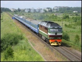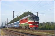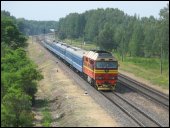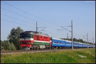 Тепловоз ТЭП70К-0260 с поездом Вильнюс - Минск, перегон Солы - Сморгонь, Гродненская обл., 16.VI.2008, Беларусь, опубл. 9.III.2010