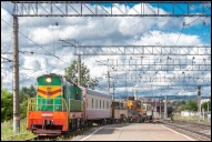 Тепловоз ЧМЭ3-2184 с вагоном-рельсосмазывателем и тепловоз ЧМЭ3-2448 с вагоном-тренажёром на станции Нязепетровская