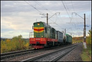 Тепловоз ЧМЭ3-6186 со сборным поездом, ст. Цон