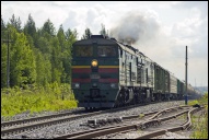 Тепловоз 2ТЭ10МК-2256 с грузовым поездом на перегоне Макуха - Луза