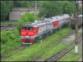 Тепловозы 2ТЭ10МК-2496 и 2ТЭ25А-021 на подъездном пути к УЛРЗ