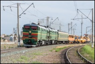 Тепловоз 2ТЭ10М-0796, динамический стабилизатор пути ДСП-С4, подбивочная машина-автомат ПМА1-001, дрезина ДГКУ/5-4728 на перегоне Кутум - Астрахань-I