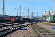Тепловоз 2ТЭ10М-2632 с грузовым поездом, станция Красноярск