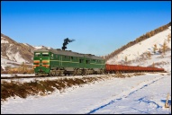 Тепловоз 2ТЭ116-1298 с грузовым поездом на перегоне рзд. Хоолт - Баян, УБЖД