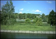 | Электропоезд { EMU train }, станция Икша (вид с канала им. Москвы) { Iksha station (view from the Moskva channel) }, 4.VII.2003 Кондаков А.