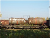 | Кротков: | Платформа древняя с буферами, с буксами скольжения и вся поросшая сорняками. К тому же тележки разные и рама клепаная. (2011-10-09 21:15:36)