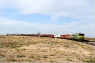 | | Уткин Михаил: | Тепловоз 2ТЭ10М-3628 ТЧ Туркистан с грузовым поездом. Перегон Акдала – Арыс I. (2010-10-30 11:21:17)