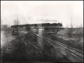 | Пассажирский поезд проходит путепровод на 126 км линии Ижевск - Балезино, 194? Иванцов М. (колл.)