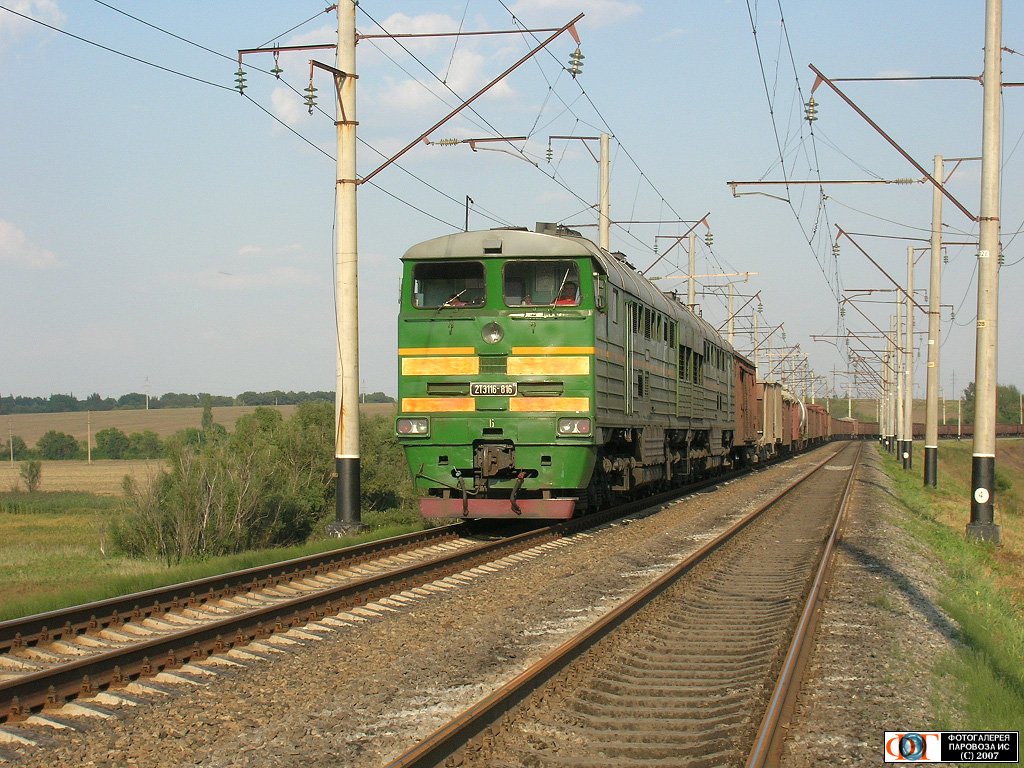 | Тепловоз 2ТЭ116-816 спускается в долину, перегон Решетиловка - Братешки, Полтавская обл. Автор: Vivan755 | Фото сделано VIII.2007, опубликовано 27.X.2007.