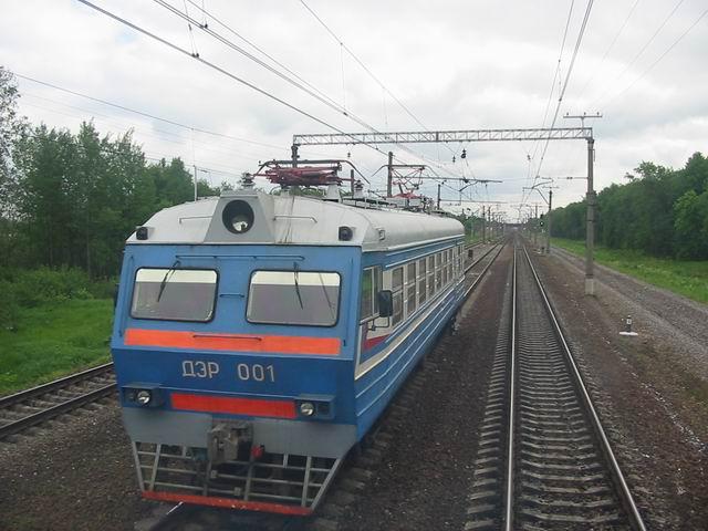| Электромотриса ДЭР-001 { DER-001 electric railcar }, станция Обухово { Obukhovo station }, Санкт-Петербург Автор: 251 | Фото сделано 7.VI.2003, опубликовано 3.VII.2003.