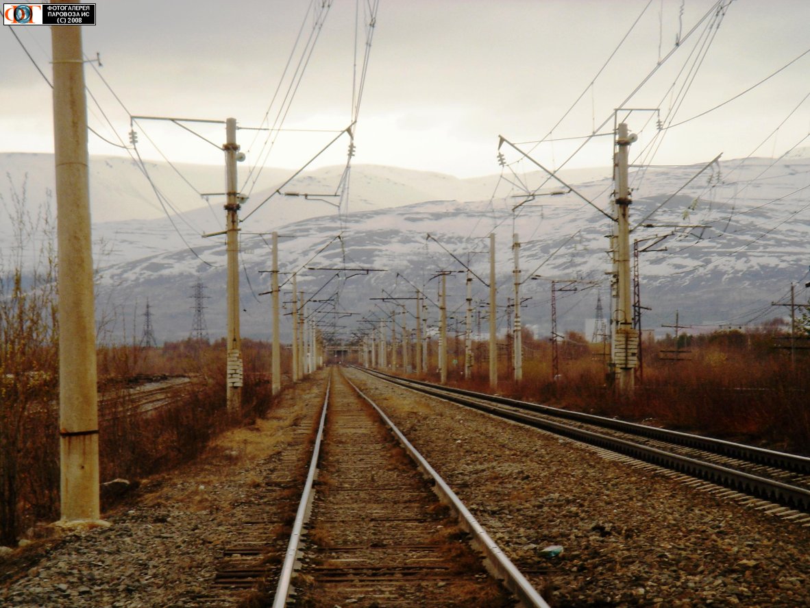 | Вид со станции Апатиты в сторону станции Нефелиновые пески, Мурманская обл. Автор: Шорохов | Фото сделано 20.V.2007, опубликовано 5.II.2008.