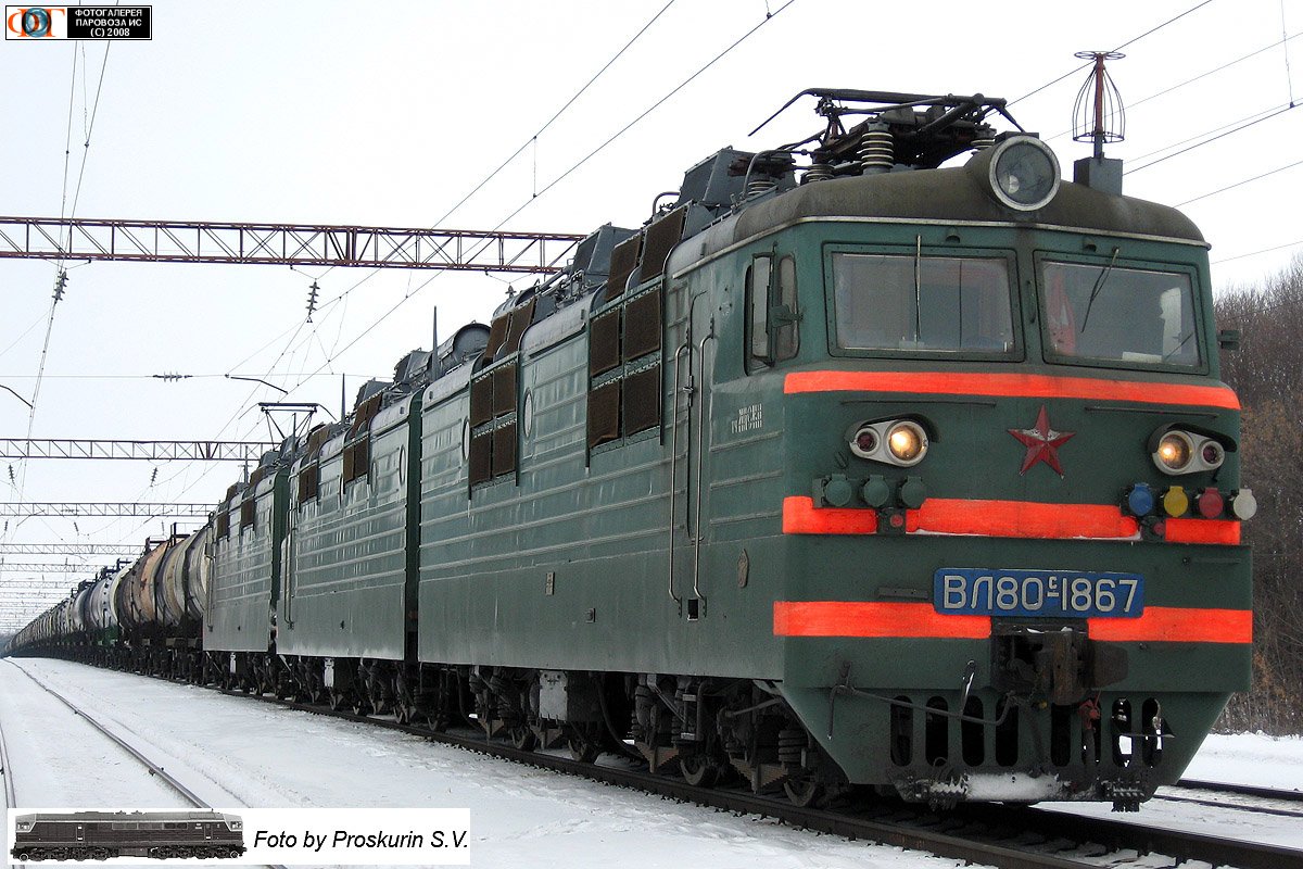 | Электровоз ВЛ80С-1867/1870 с составом из цистерн по ст. Хлевище, Белгородская обл. Автор: Проскурин С. В. | Фото сделано 30.I.2008, опубликовано 13.II.2008.