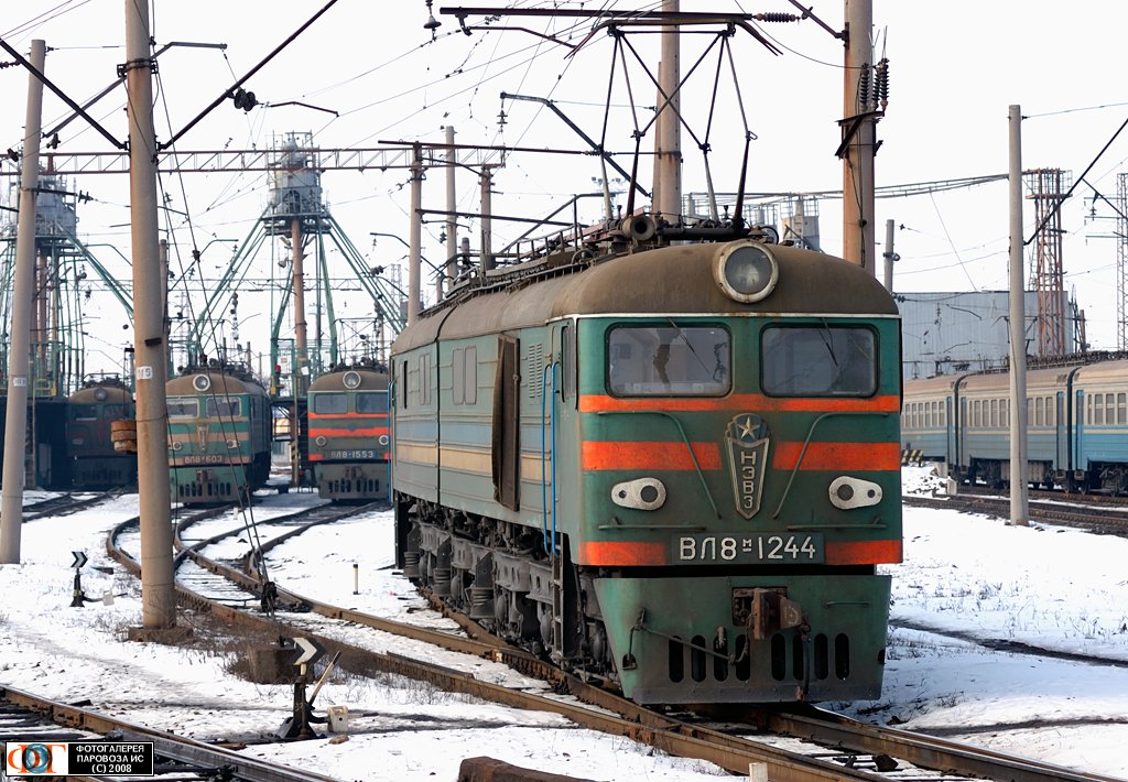 | Электровоз ВЛ8М-1244 заходит на ПТОЛ депо Ясиноватая-Западная, Донецкая обл. Автор: Орлов Д. | Фото сделано 3.II.2008, опубликовано 19.II.2008.