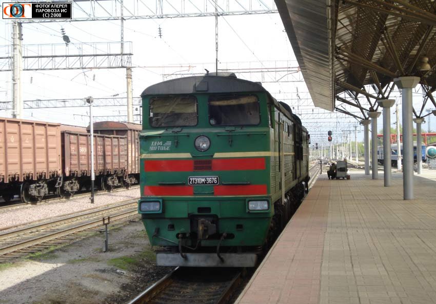 | Тепловоз 2ТЭ10М-3676 ожидает состав, Алма-Ата Автор: Гольбрайхт М. | Фото сделано 13.IV.2008, опубликовано 22.IV.2008.