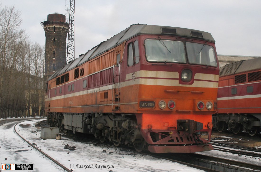 | Тепловоз ТЭП70-0366, депо СПб-Варшавский, Санкт-Петербург Автор: ALX aka Алексей Лаушкин | Фото сделано 8.III.2008, опубликовано 7.V.2008.