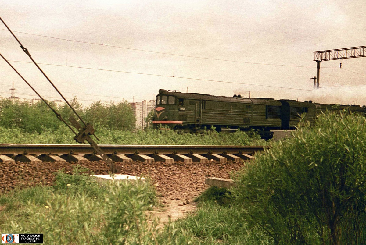 | Тепловоз ТЭ3 у пл. Купчино, перегон Шушары - Ленинград-Тов.-Витебский, Санкт-Петербург Автор: Александр GM | Фото сделано 5.VI.1985, опубликовано 26.VII.2008.