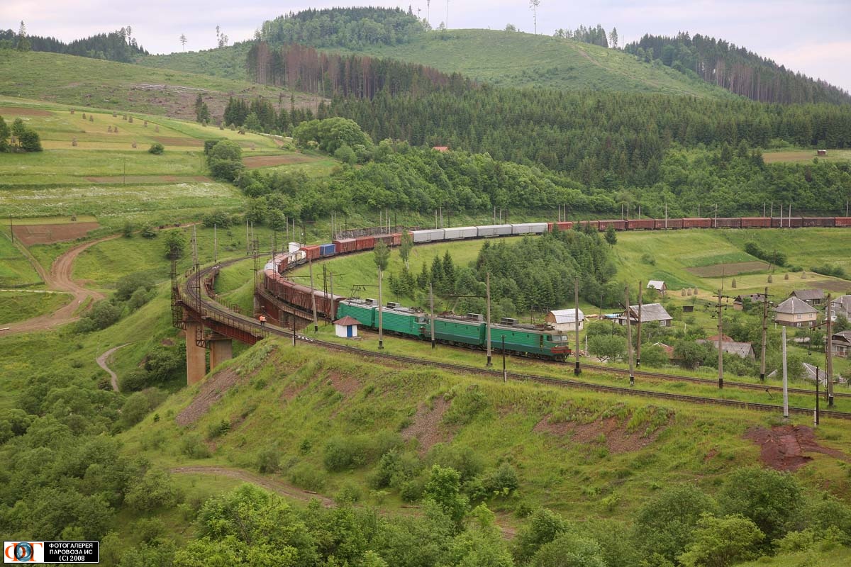 Грузовой поезд во главе с электровозом ВЛ11М-087, перегон перегон Воловец - Скатарске, Закарпатская обл.