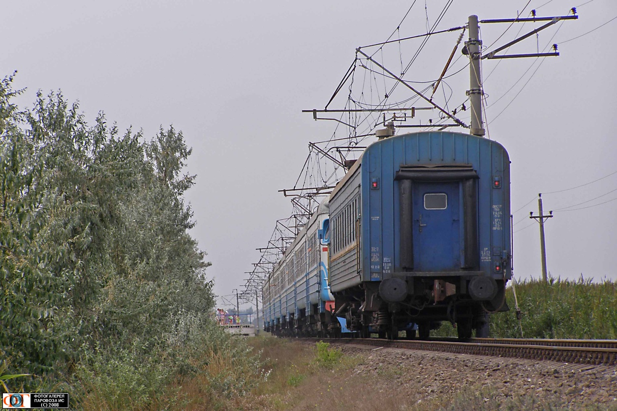 Электропоезд ЭР1-199 с прицепным пассажирским вагоном, перегон ст. Прибрежная - ст. Евпатория-Товарная
